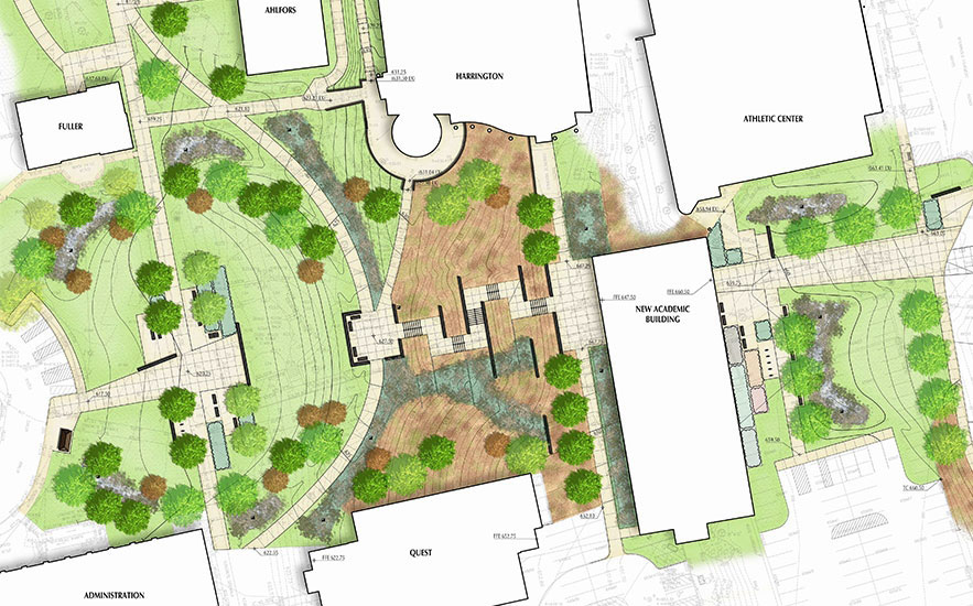Shadley Associates worked with Gensler and a multidisciplinary team to prepare a certifiable building study for a new classroom building for this Worcester campus. Site design included an emphasis on water conservation, integrated stormwater management, and low-maintenance, ecologically appropriate planting design. In addition, Shadley Associates prepared alternative site designs that address accessible routes between the new building and other campus destinations; the alternatives accommodated 46 vertical feet of grade change. Site designs also addressed site furnishings such as benches, trash receptacles and bicycle parking, site lighting, and landscaping.